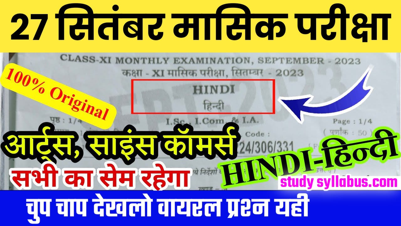 Bihar board class 11th English monthly examination and class 11th Hindi monthly examination answer ki