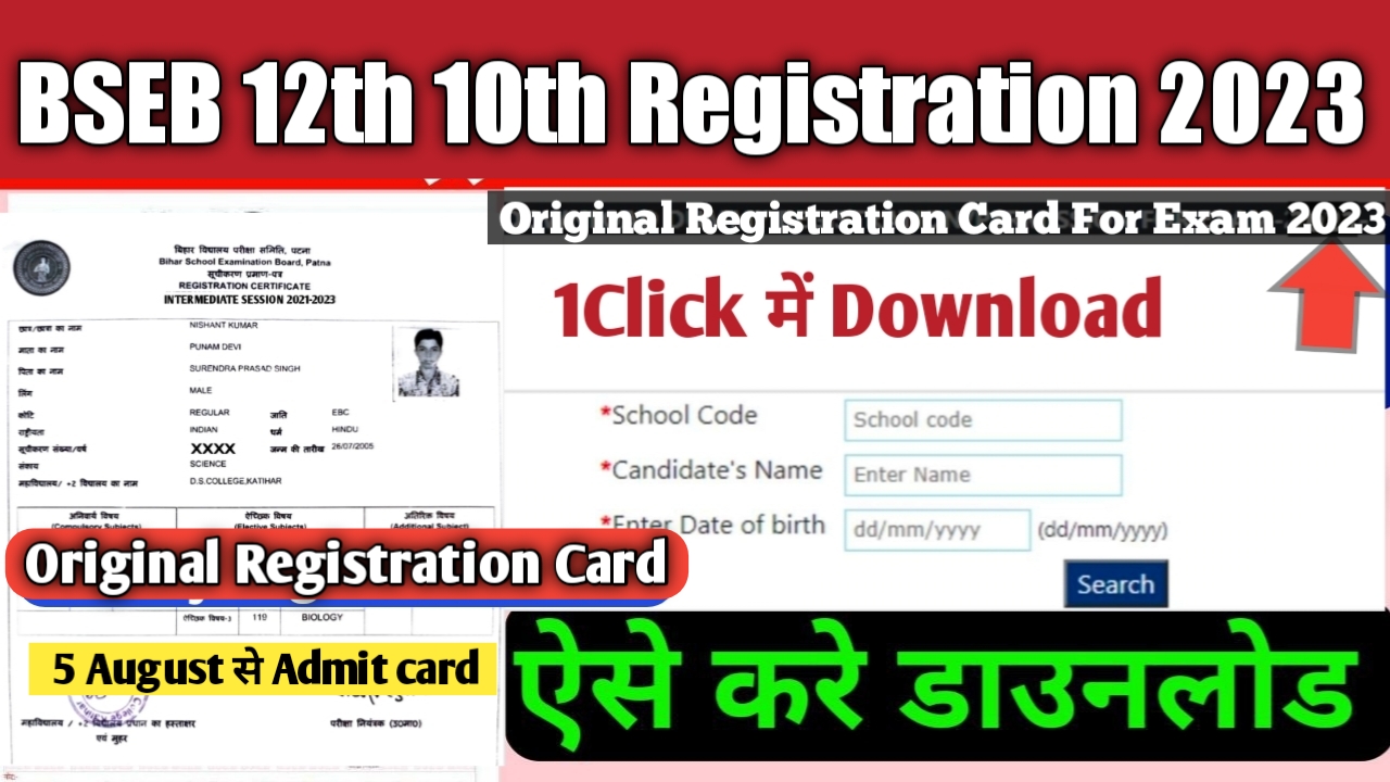 Bihar board 10th 12th Original Registration Card 2023 Download