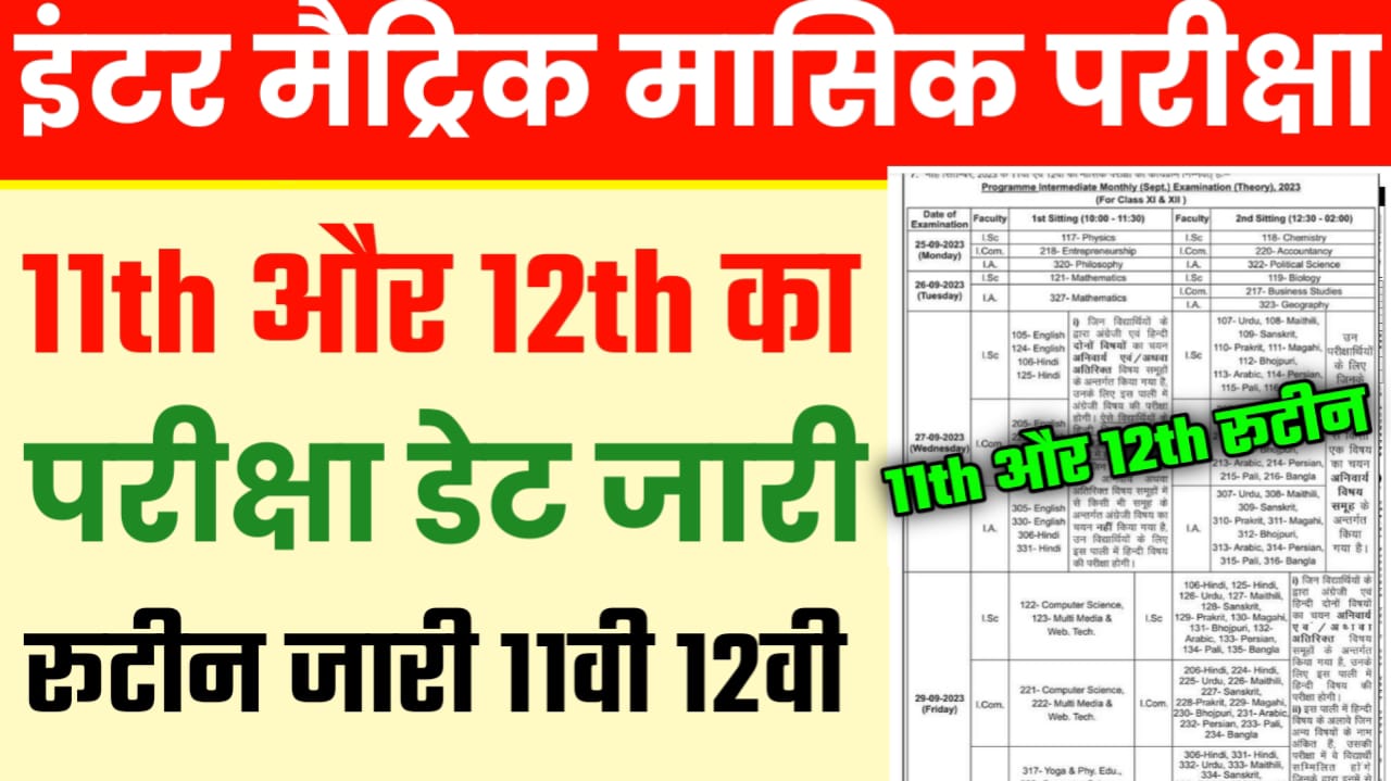 Bihar Board 11th 12th Monthly Examination Time Table 2024
