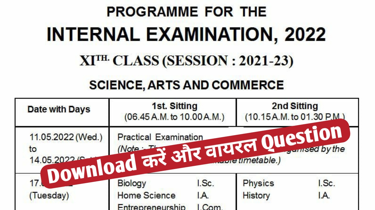 हेलो दोस्तों स्वागत है आपका इस नई पोस्ट में दोस्तों आज हम बताने वाले हैं इलेवंथ एग्जाम का डेट और उसका टाइम टेबल जो भी स्टूडेंट बिहार विद्यालय परीक्षा समिति की तरफ से 2022 में 11th का एग्जाम देने वाले हैं वह सभी परीक्षार्थी इस पोस्ट को अंत तक जरूर पढ़ें आपको पता चल जाएगा कि आपका कॉलेज में कब से एग्जाम शुरू है और टाइम टेबल क्या है दोस्तों आप लोग इस पोस्ट को पूरा अंत तक जरूर पढ़ें।