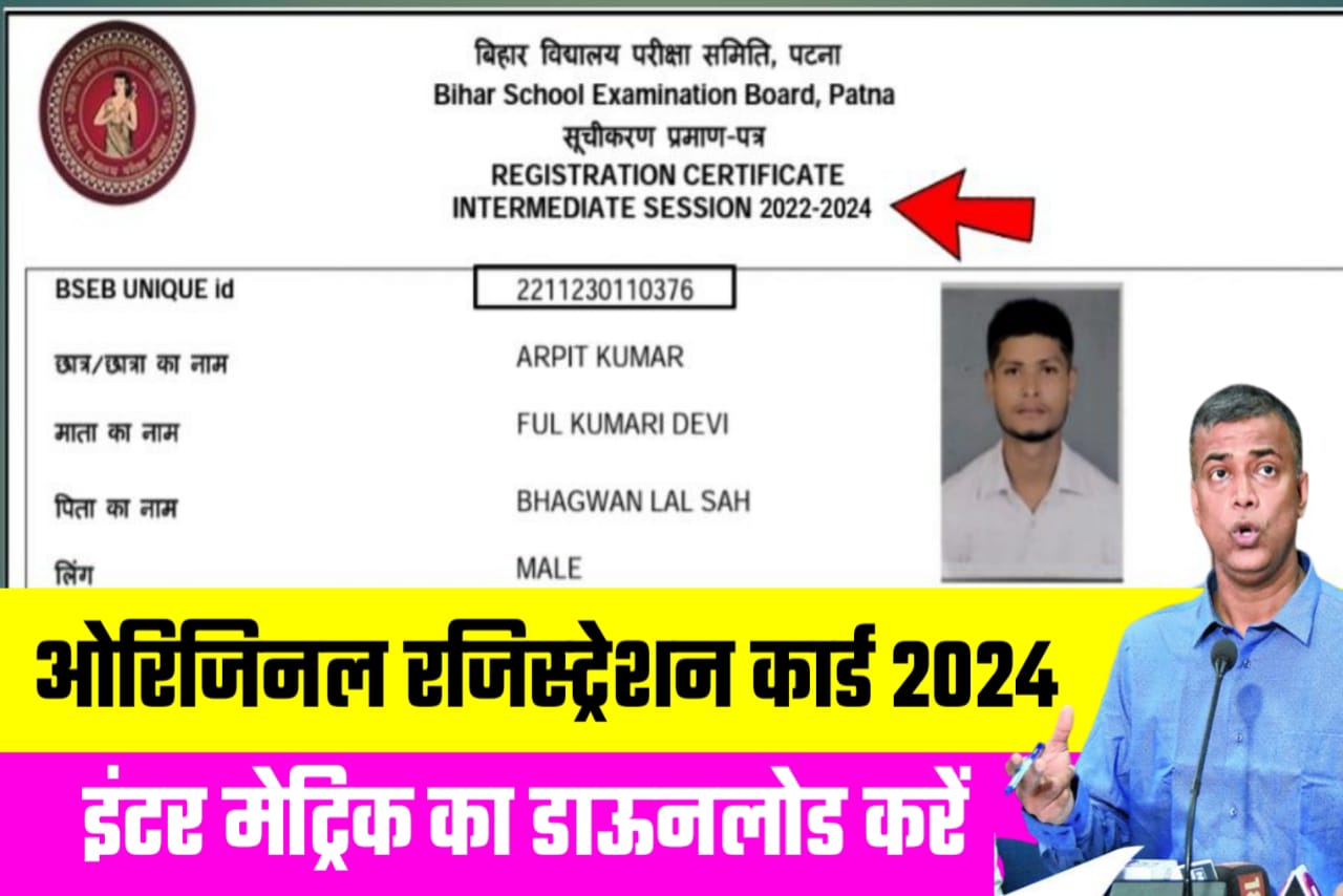 बिहार बोर्ड कक्षा 12 वीं एवं दसवीं Original पंजीयन पत्र 2024 परीक्षा।