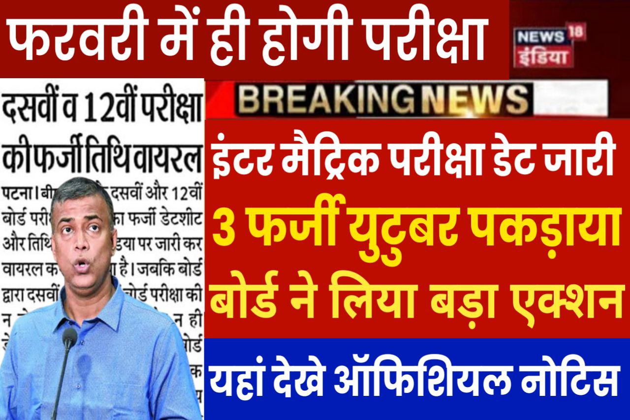 बिहार बोर्ड ने बताया कि 2023 परीक्षा के लिए फरवरी माह में ही परीक्षा होने वाली है जैसा कि सूत्रों से पता चला है कि आनंद किशोर ने बताया कि 2023 परीक्षा फरवरी 9 प्रथम सप्ताह में ही जारी किया जाएगा जैसा कि पिछले 4 वर्षों से फरवरी माह में ही परीक्षा लिया जा रहा है उसी प्रकार से इस वर्ष भी 2023 परीक्षा के लिए फरवरी माह के प्रथम सप्ताह में ही रूटीन जारी किया जाएगा और सभी विद्यार्थियों को फेक वीडियो से बचना है और फेक जानकारी से बचना है।
