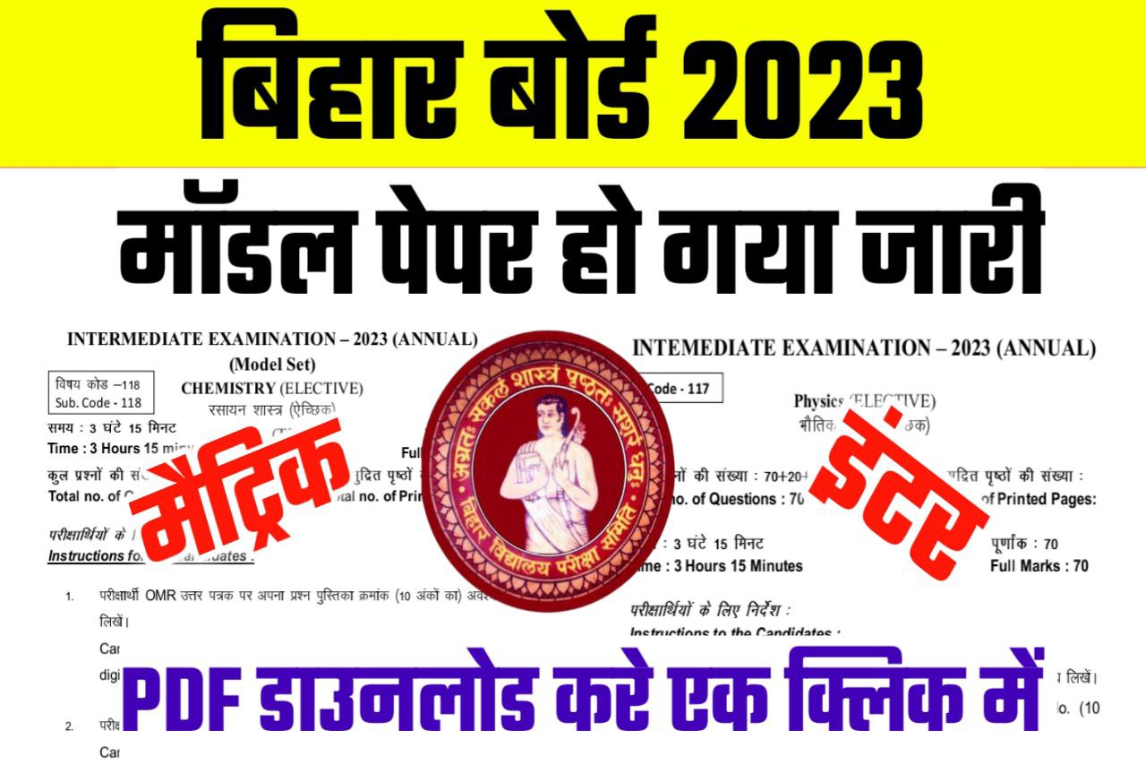 बिहार विद्यालय परीक्षा समिति द्वारा जारी किया गया 2023 परीक्षा का मॉडल पेपर डाउनलोड करने के लिए सबसे पहले नीचे दिया गया है लिंक आप लोग उसके अंतर्गत डाउनलोड कर सकते हैं।