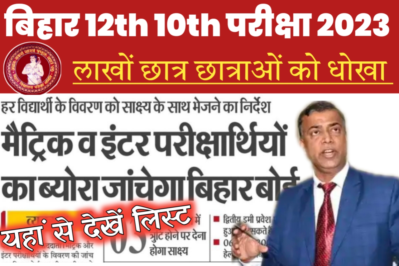 मैट्रिक और इंटर परीक्षार्थियों के विवरण की जांच और बिहार बोर्ड द्वारा की जाएगी इससे पहले सभी स्कूल कॉलेज ही जांच करती थी लेकिन 2023 परीक्षा को लेकर बिहार बोर्ड ने लाखों छात्रों को करेंगी 2023 परीक्षा से निष्कासित तो जानिए कैसे विद्यार्थी को निष्कासित करेगी वह विद्यालय कौन कौन सा है।