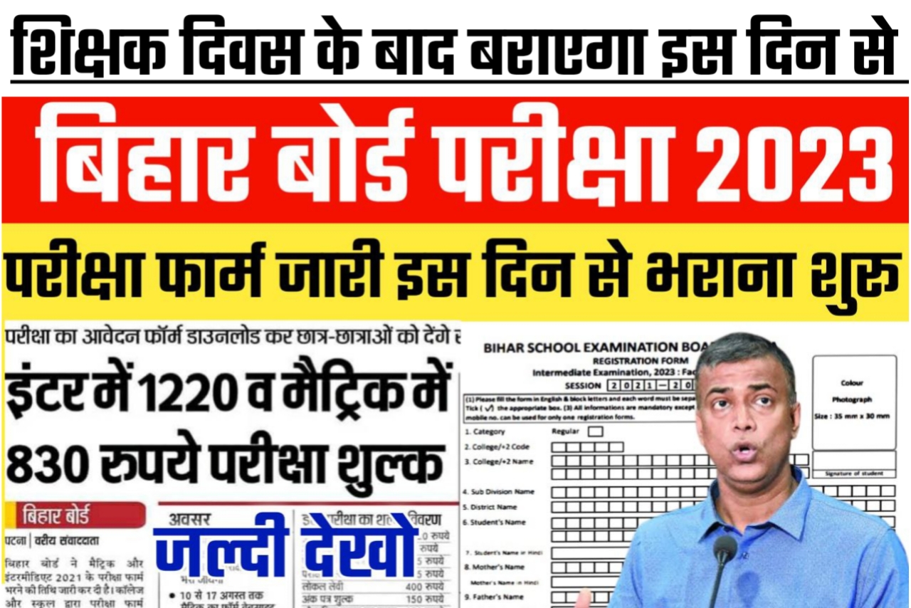 बिहार विद्यालय परीक्षा समिति 2023 द्वारा जारी किया गया की परीक्षा फॉर्म शिक्षक दिवस के बाद भरा या जाएगा और इसमें बहुत सारे परिवर्तन होगा 2023 परीक्षा के लिए जैसा कि परिवर्तन नीचे दिया गया है उसे अच्छी तरह से सभी को जानना जरूरत है