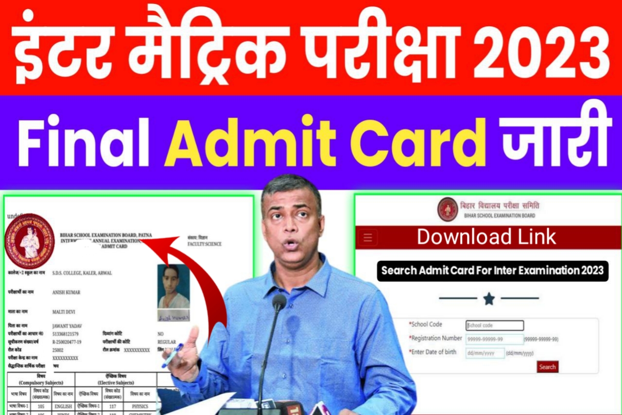 जैसा कि बिहार बोर्ड द्वारा बताया गया कि 2023 परीक्षा का ओरिजिनल एडमिट कार्ड का लिंक जारी कर दिया गया है जैसे डमी एडमिट कार्ड का 2 से 3 दिन पहले ही ओरिजिनल लिंक जारी कर दिया गया था उसी तरह से फाइनल एडमिट कार्ड यानी ओरिजिनल एडमिट कार्ड डाउनलोड करने के लिए भी बिहार विद्यालय परीक्षा समिति द्वारा लिंक एक्टिवेट कर दिया गया है जिसके द्वारा आप लोग मात्र 1 से 2 दिनों के बीच में ही कभी भी किसी भी समय अपना अपना ओरिजिनल एडमिट कार्ड डाउनलोड कर सकते हैं।