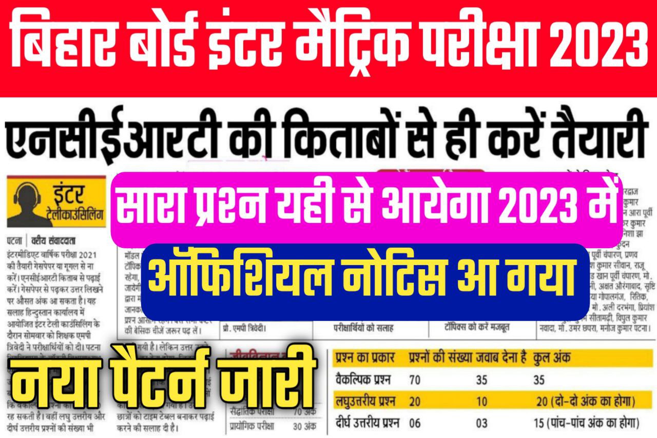 इंटरमीडिएट वार्षिक परीक्षा 2023 की तैयारी गेसपेपर या गूगल से ना करें। एनसीईआरटी किताब से पढ़ाई करें। गेसपेपर से पढ़कर उत्तर लिखने पर औसत अंक आ सकता है। यह सलाह हिन्दुस्तान कार्यालय में आयोजित इंटर टेली काउंसिलिंग के दौरान सोमवार को शिक्षक एमपी त्रिवेदी ने परीक्षार्थियों को दी। पटना विविद्याय के बॉटनी विभागाध्यक्ष एमपी त्रिवेदी की मानें तो इस बार जीव विज्ञान में प्रश्नों की संख्या बढ़ायी जायेगी। प्रो. त्रिवेदी ने कहा कि वैकल्पिक प्रश्नों की संख्या 70 रह सकती है। वहीं लघु उत्तरीय और दीर्घ उत्तरीय प्रश्नों की संख्या भी बढ़ायी गयी है। लेकिन उत्तर उतने ही प्रश्न का देना होगा, जितना 2022 की परीक्षा में देना होता था। उन्होंने बताया कि सिलेबस में कोई कमी नहीं की गयी है। केवल प्रश्नों की संख्या बढ़ायी गयी है। उन्होंने छात्रों को टाइम टेबल बनाकर पढ़ाई करने की सलाह दी है।