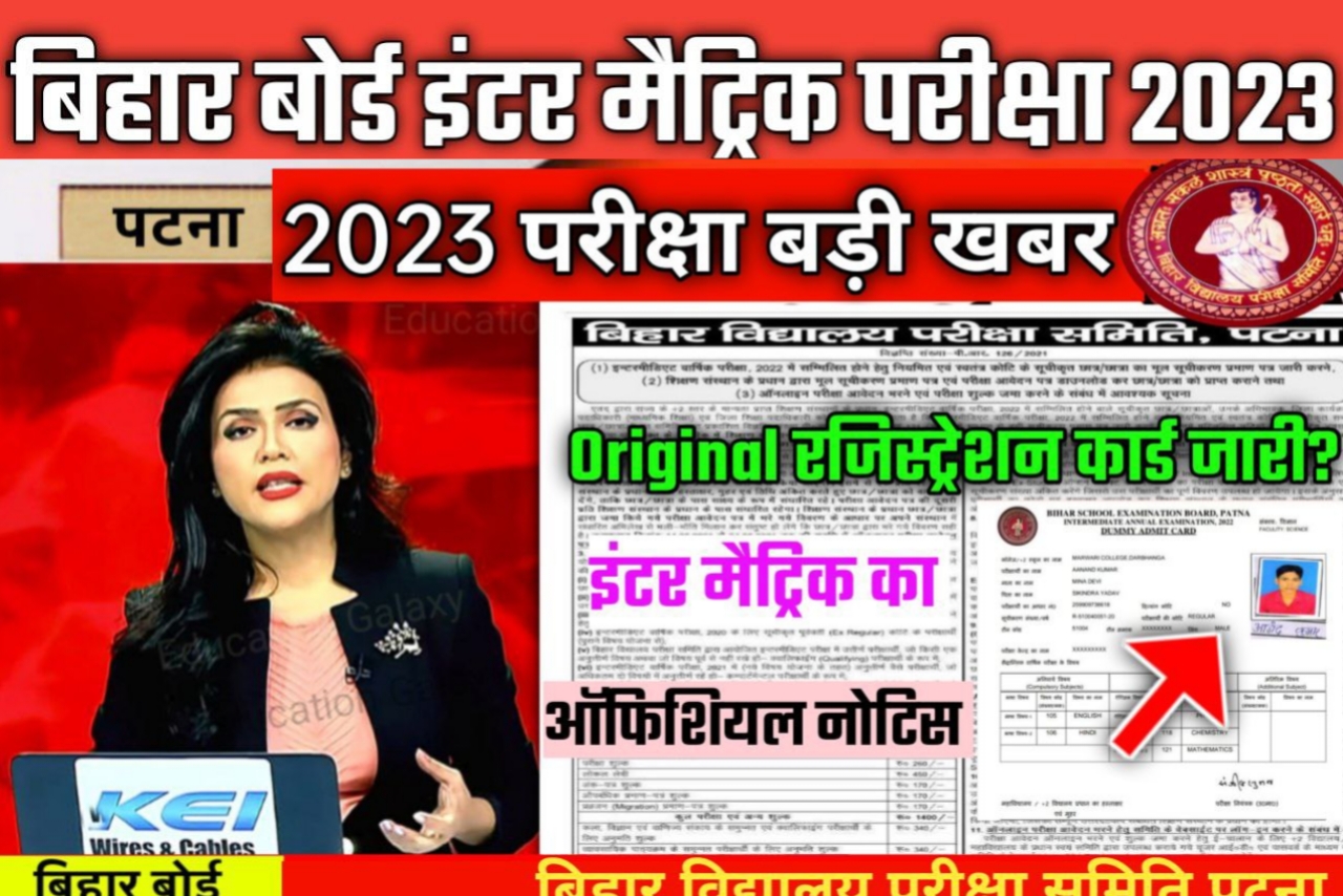 बिहार विद्यालय परीक्षा समिति द्वारा 27 जुलाई को डमी रजिस्ट्रेशन कार्ड जारी किया गया था साथ ही उसका ओरिजिनल रजिस्ट्रेशन कार्ड का डेट बताया गया था कि 25 अगस्त से 5 सितंबर के अंदर तक ओरिजिनल रजिस्ट्रेशन कार्ड जारी कर दिया जाएगा जैसा कि आप लोगों को सूत्रों के हवाले से पता चलता है कि बताया गया मैट्रिक इंटर परीक्षा 2023 का ओरिजिनल रजिस्ट्रेशन कार्ड जारी कर दिया गया है जैसा आप लोग नीचे दिए गए ऑफिशियल नोटिफिकेशन को देख सकते हैं