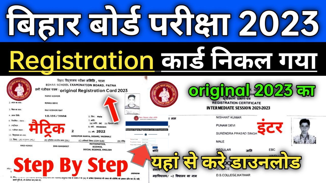 Bihar board Matric Inter Original Registration Card 2023 exam